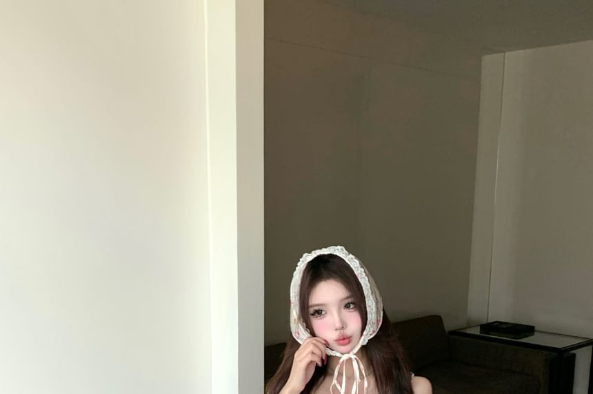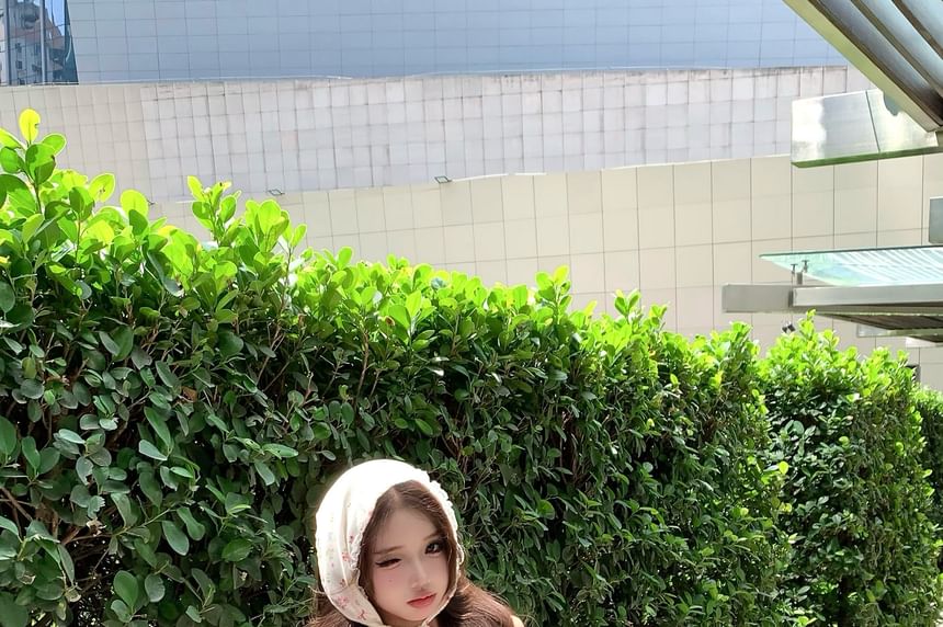 Frill Floral Bow Skirt Elastic A-Line Waist Plain / Top Mini Print Camisole Panel Crop Tiered