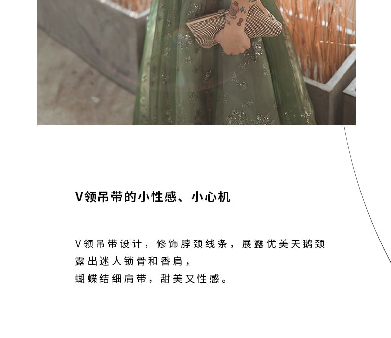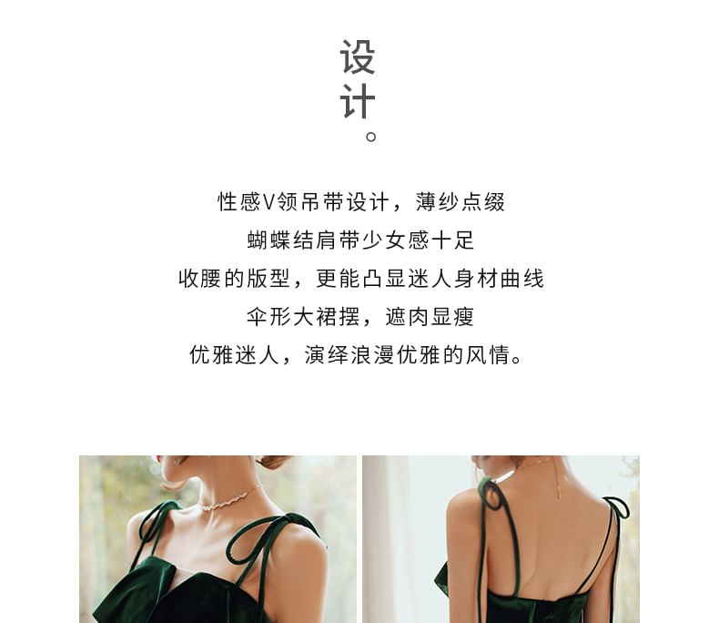 Gown Midi Sequin Evening Spaghetti-Strap A-Line