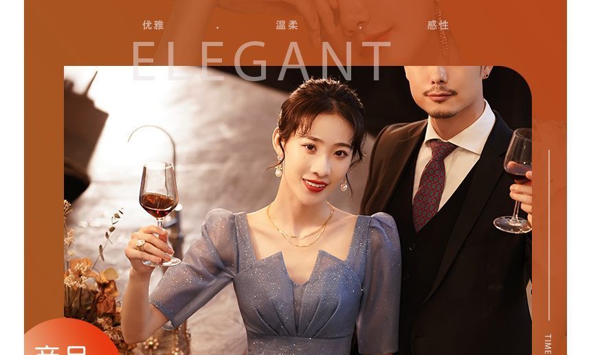 Gown Short-Sleeve A-Line Mesh Evening Notched