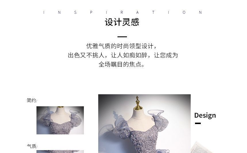 Gown Sleeve Sequin Neck Mesh Puff A-Line Panel Evening Square Ruffle