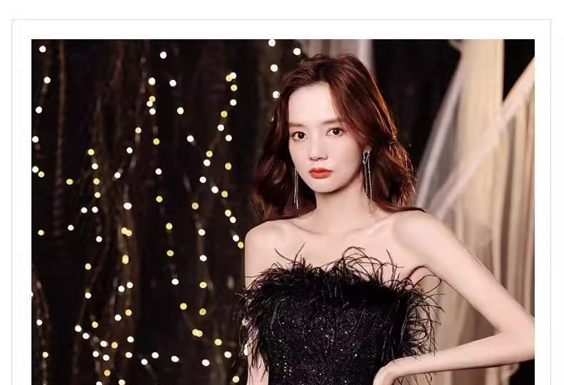 Gown Trim Evening Panel Lace A-Line Feather Strapless Sequin