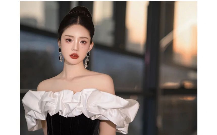 Gown two-Tone Ruffled Mermaid Velvet Off-Shoulder Evening