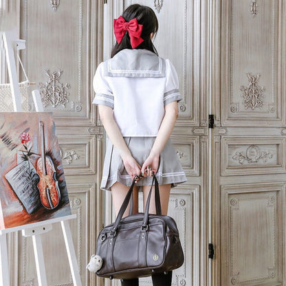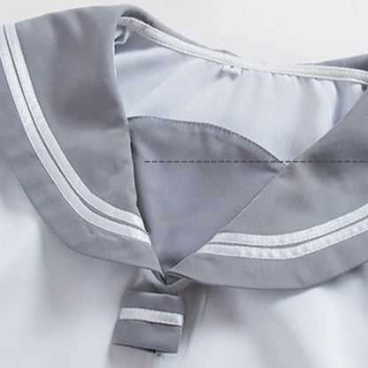 Grey Sailor Collar T-Shirt Tie Pleated Skirt Set