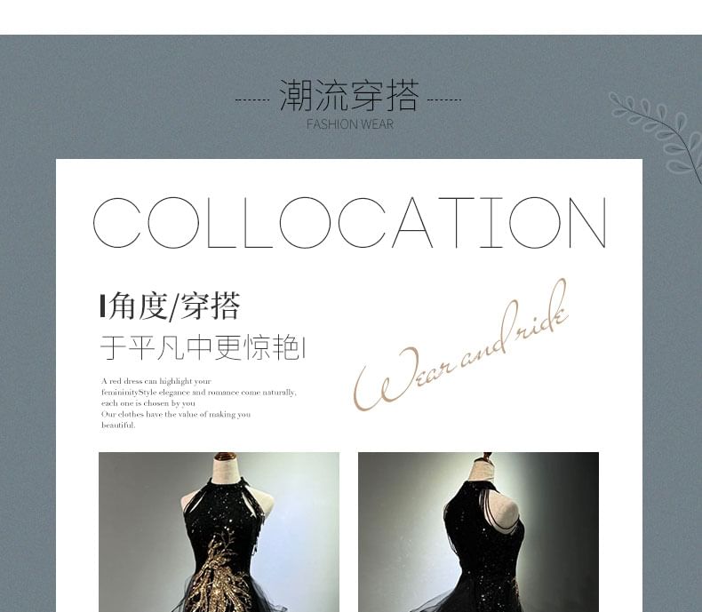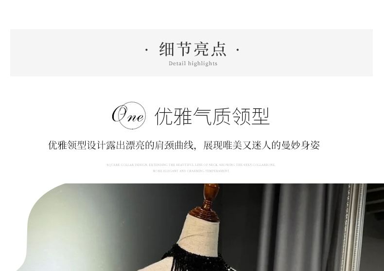 Halter Neck Cold Shoulder Sequin Mesh Panel Fringed Mermaid Evening Gown
