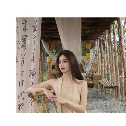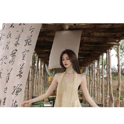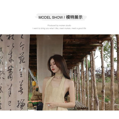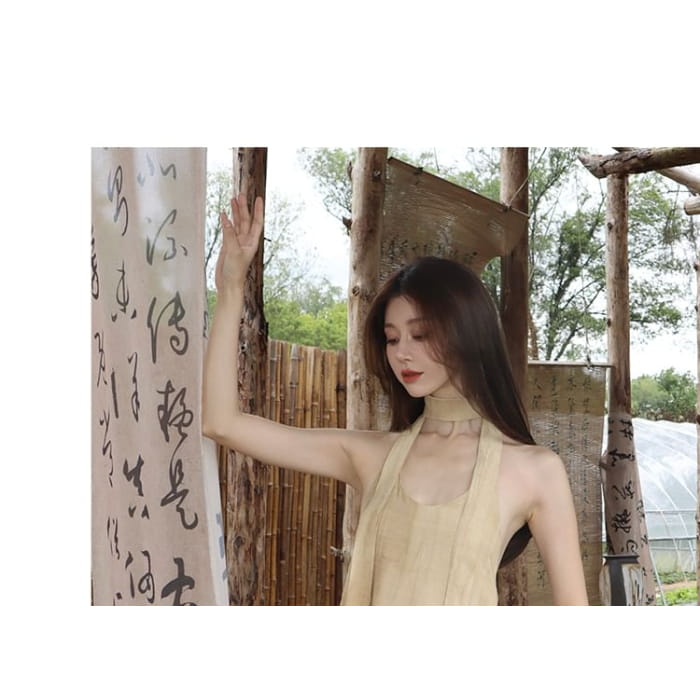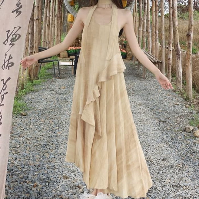 Halter Tie Dye Asymmetrical Open Back Midi A