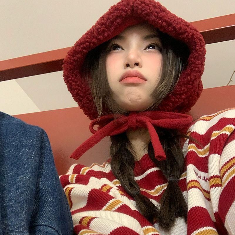 Hat Fleece Cable Tie-Up Beanie / Plain Knit
