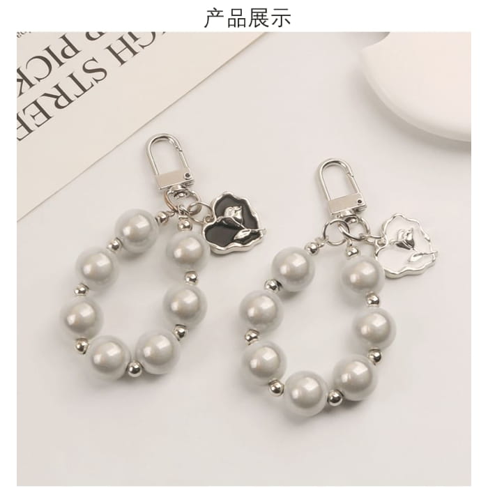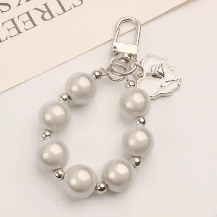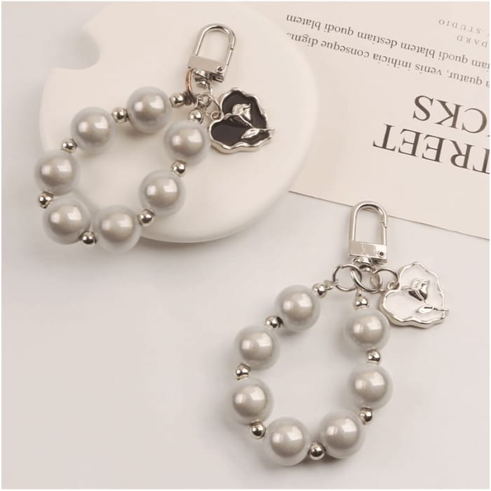 Heart Faux Pearl Bag Charm Keyring (Various Designs)