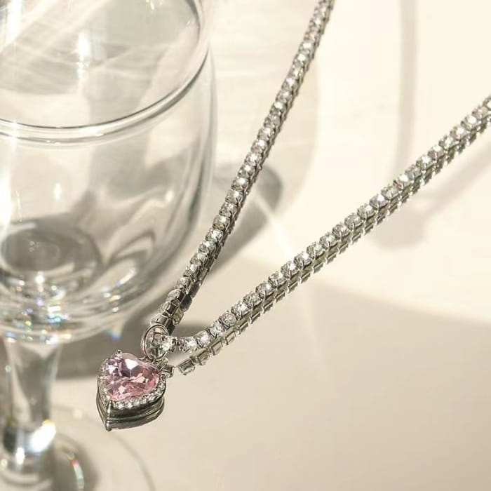 Heart Rhinestone Pendant Alloy Choker
