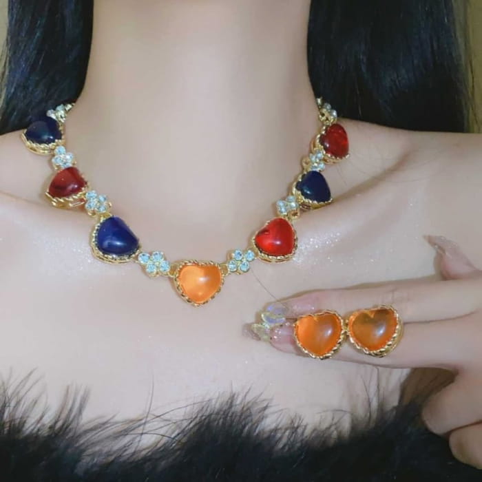 | Color: | AA1232 - Necklace - Multicolor Heart - Gold |