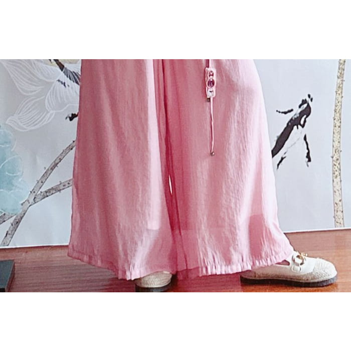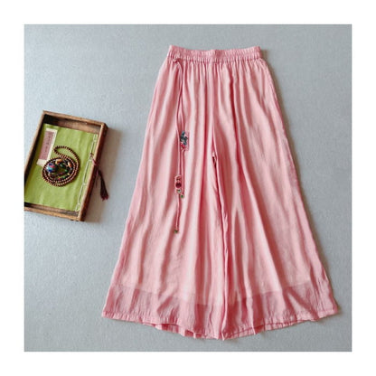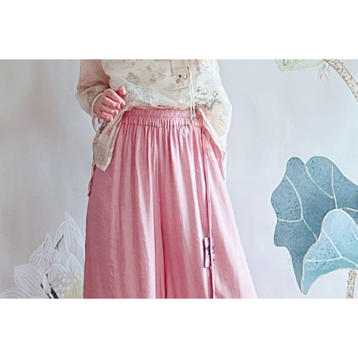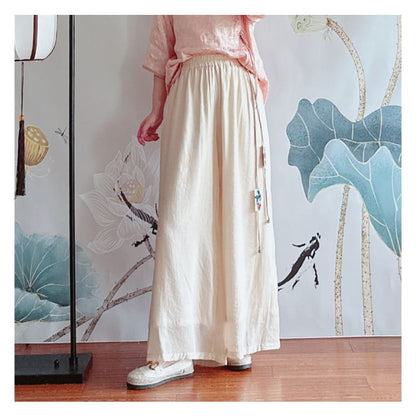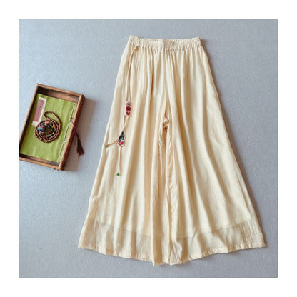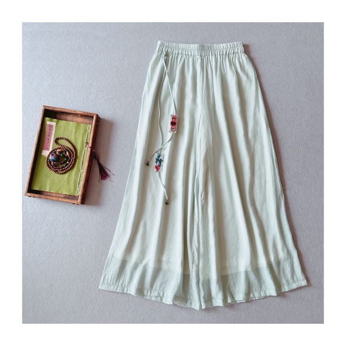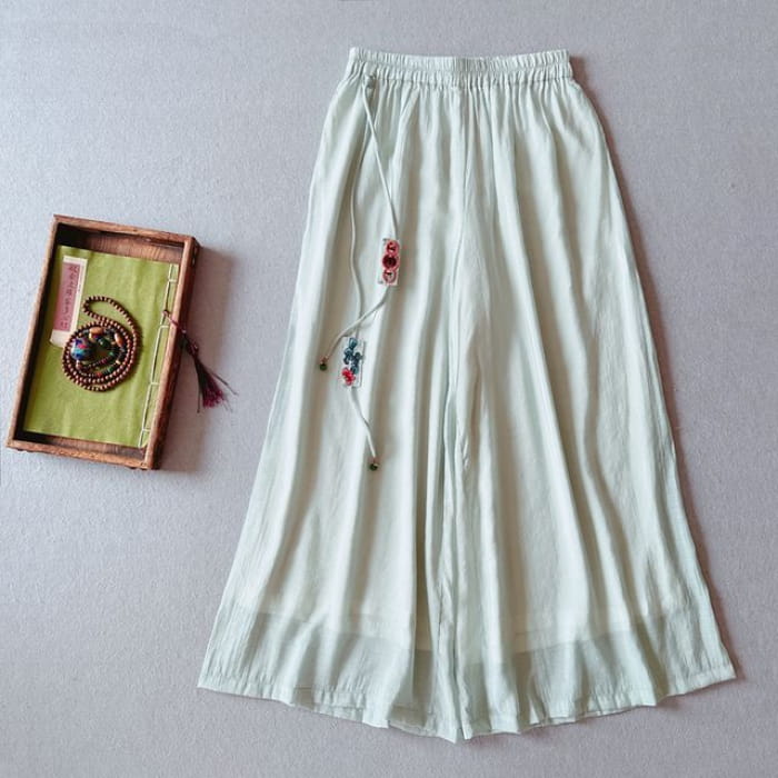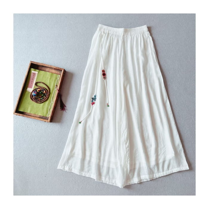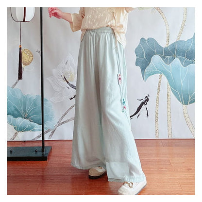 High Rise Floral Embroidered Wide Leg Pants