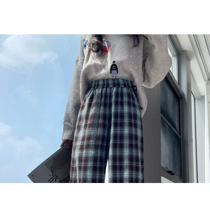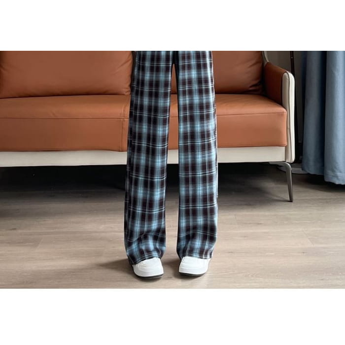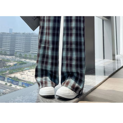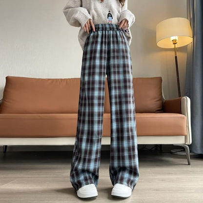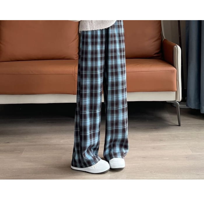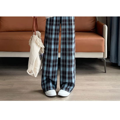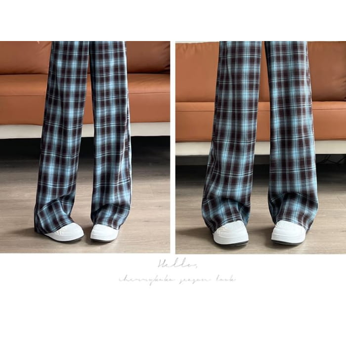 High Rise Plaid Wide Leg Pants (Various Designs)