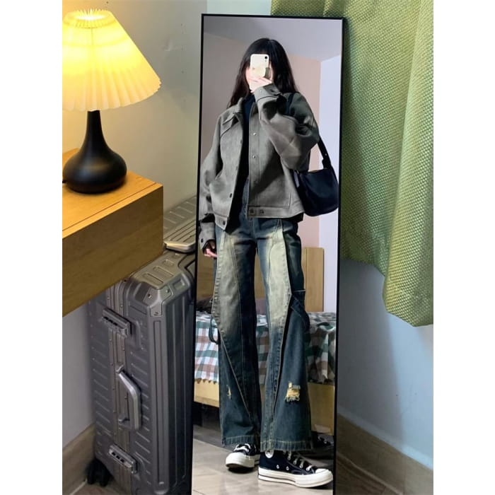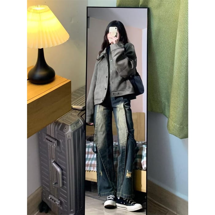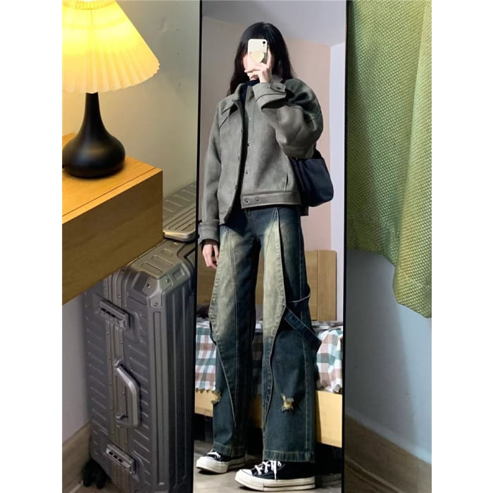 High Waist Distressed Wide Leg Jeans
