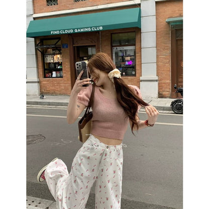 High Waist Floral Wide Leg Pants