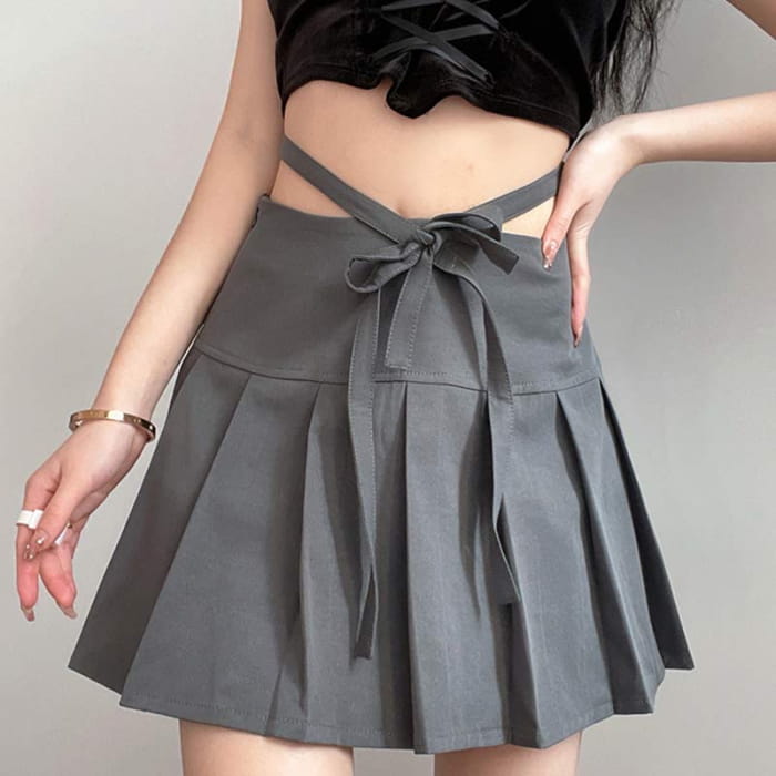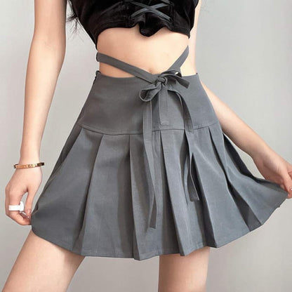 Elevate your style with our High Waist Lace Up Bow Pleated Skirt. Made with elegant lace-up details and a flattering high waist, this skirt will enhance your figure and elevate any outfit. Perfect for both formal events and casual outings, this skirt will make you stand out with its unique bow pleated design.