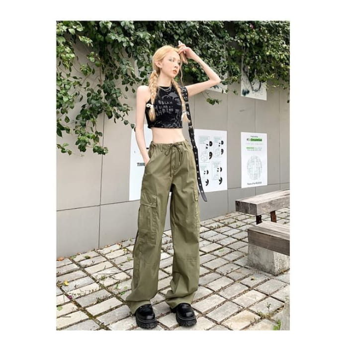 High Waist Plain Loose Fit Cargo Pants (Various Designs)
