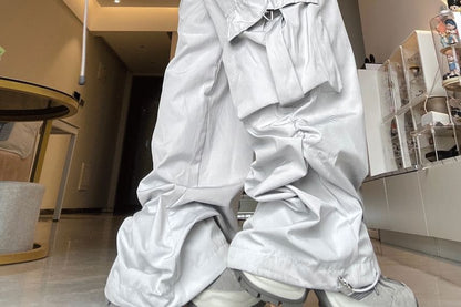 High Waist Plain Pocket Loose-Fit Wide-Leg Cargo Pants