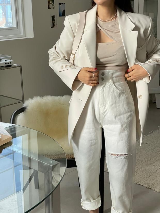 High Waist Plain Ripped Straight Leg Jeans
