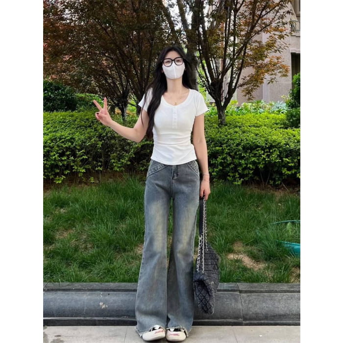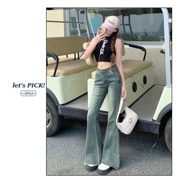 High Waist Washed Flared Jeans (Various Designs)