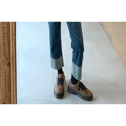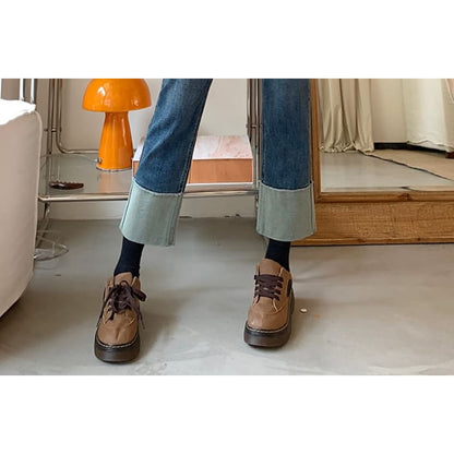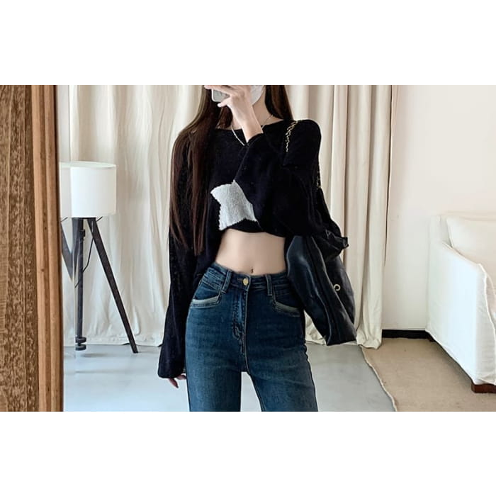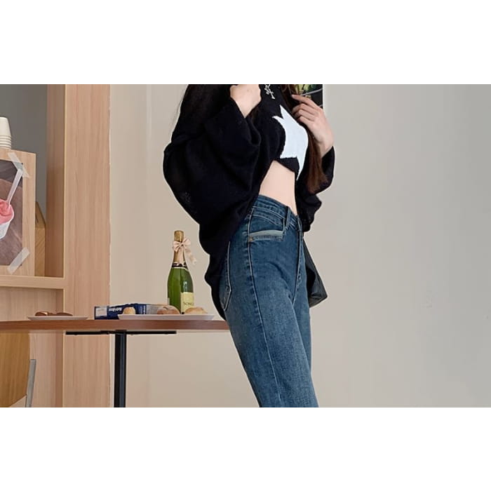 High Waist Washed Panel Cropped Straight Leg Jeans