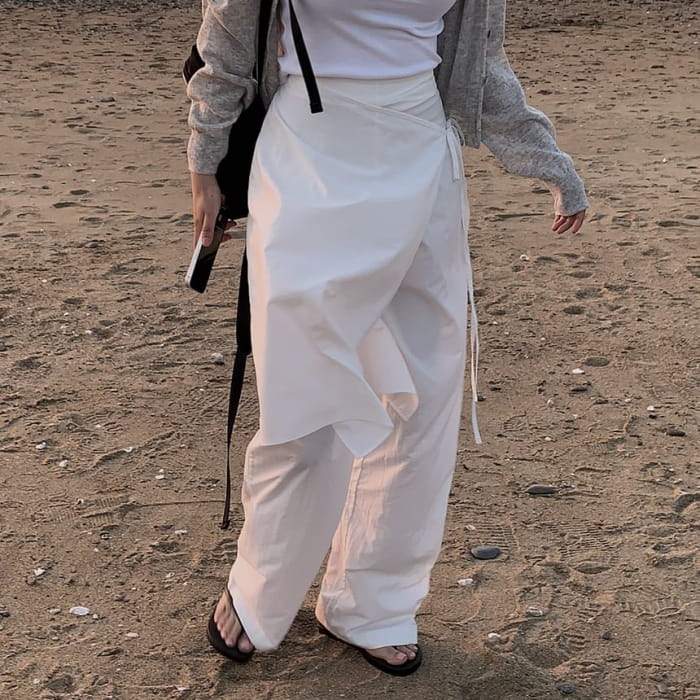 High Waistline Plain Wrap Skirt Loose Straight Leg Pants
