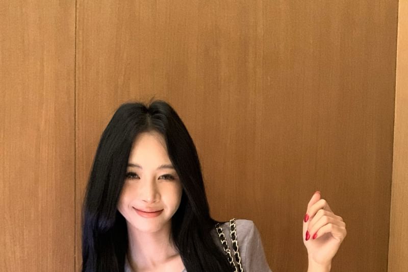 Hot Fit Tee Waist Collared Pants Half-Buttoned Plain Short-Sleeve / High Slim