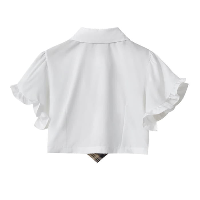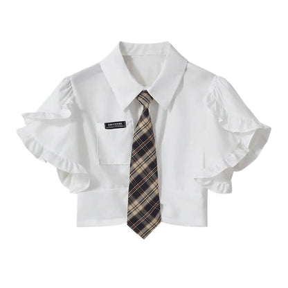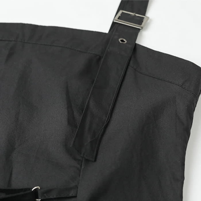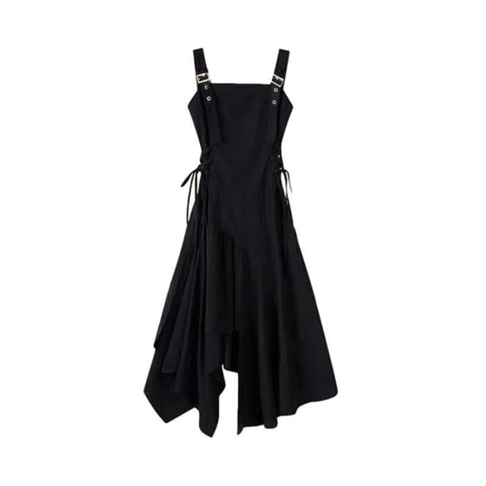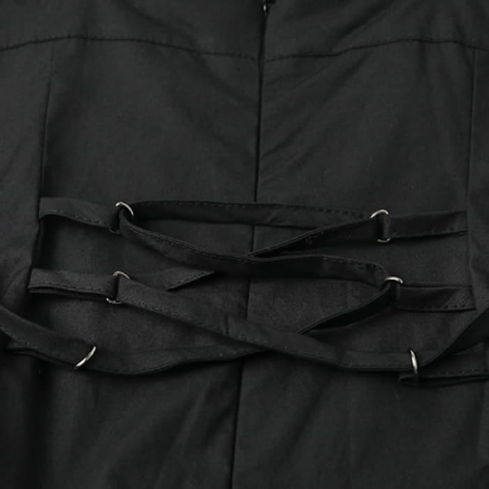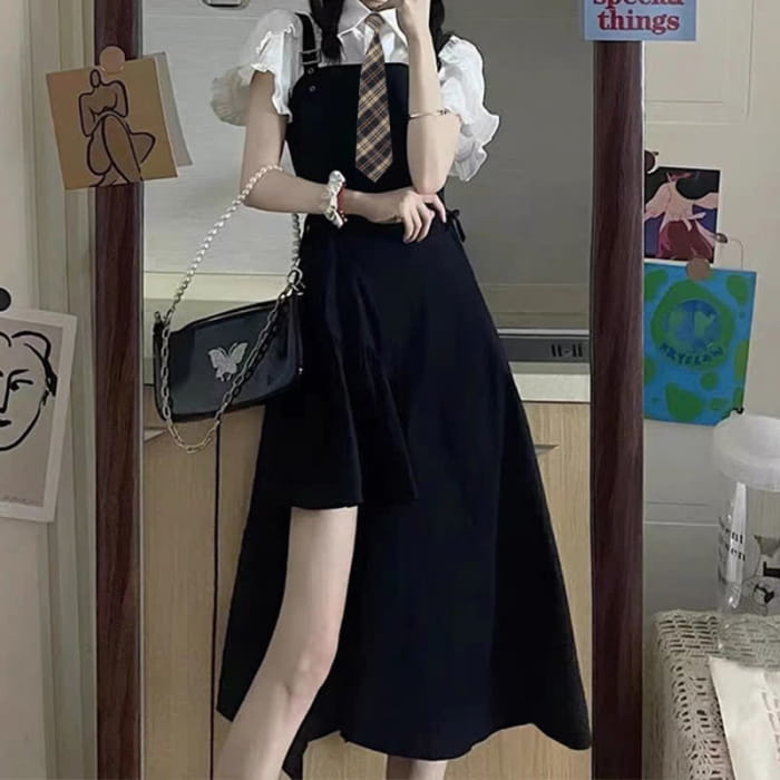 JK Flouncing Sleeve Tie Polo T-Shirt Irregular Lace Up Suspender Dress