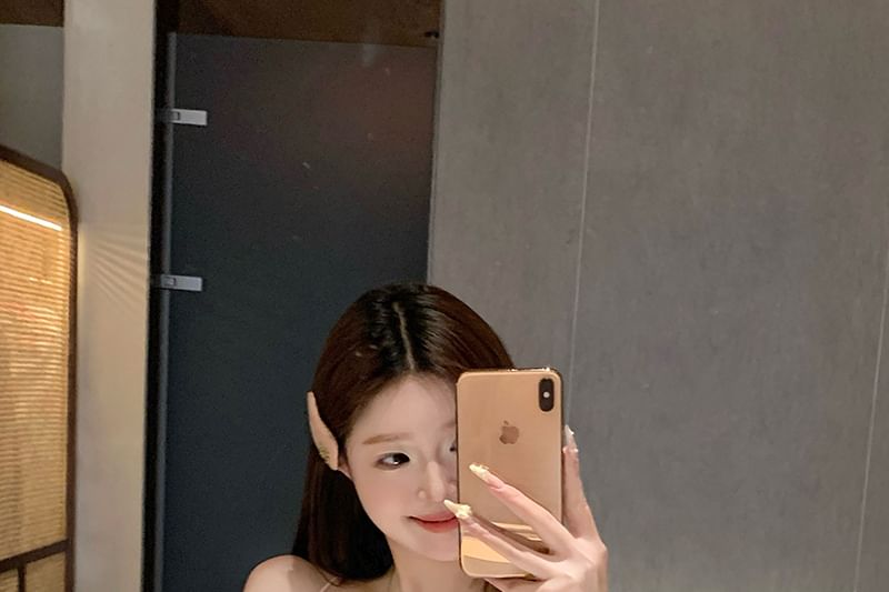 Halter Bow Beaded Lace Panel Slim Fit Camisole Top