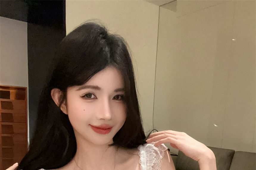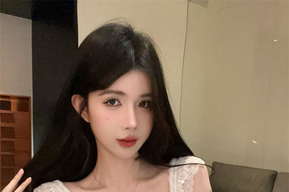 Bow Fringed Lace Panel Padded Slim Fit Camisole Top