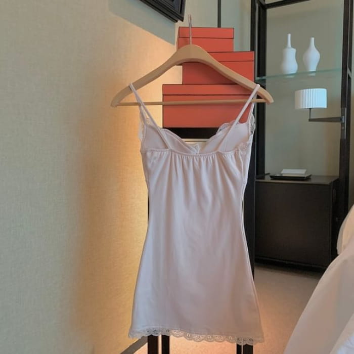 Lace Trim Plain Crop Camisole Top