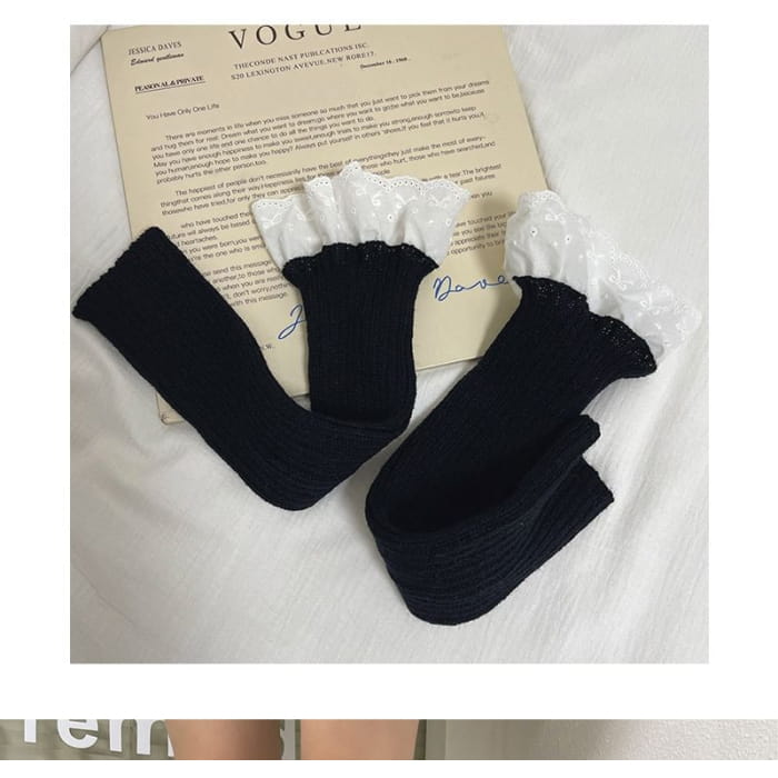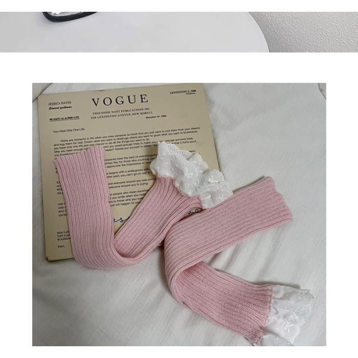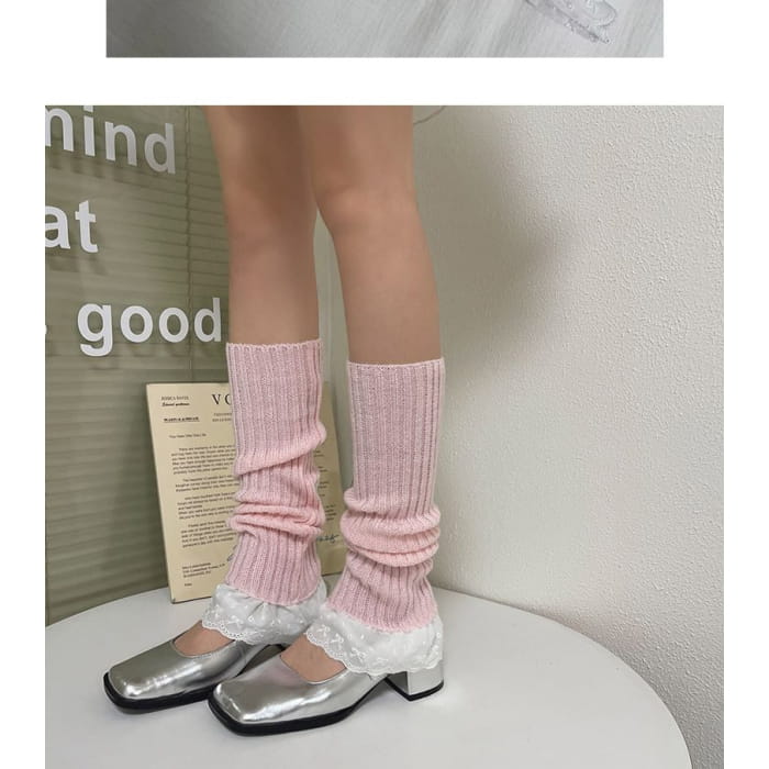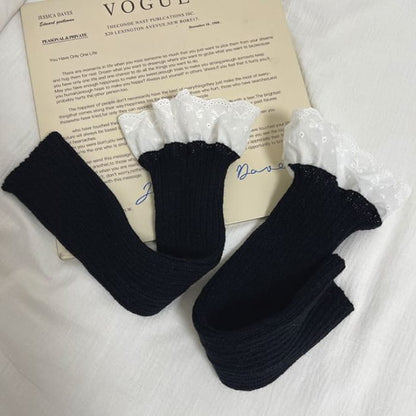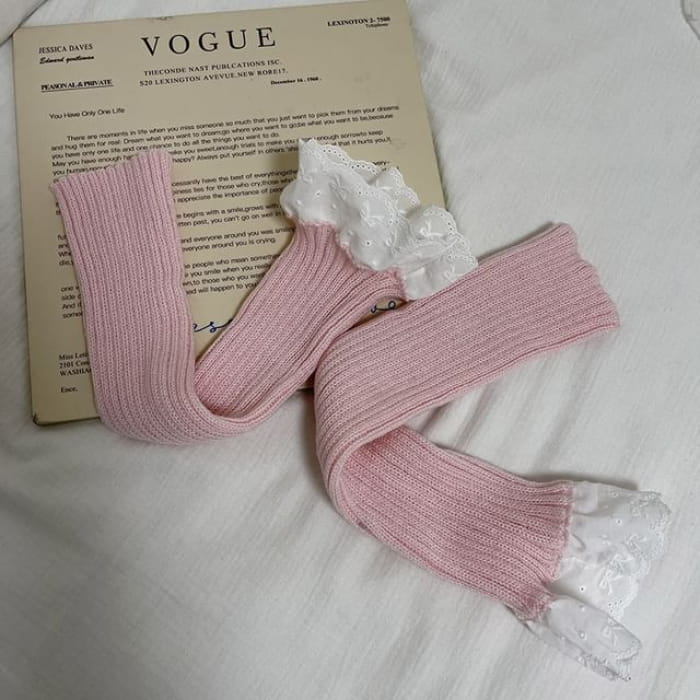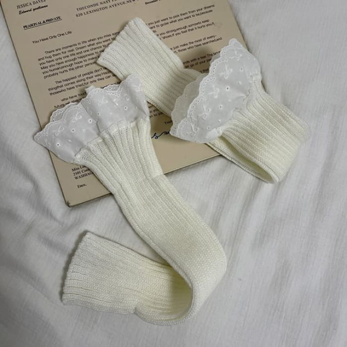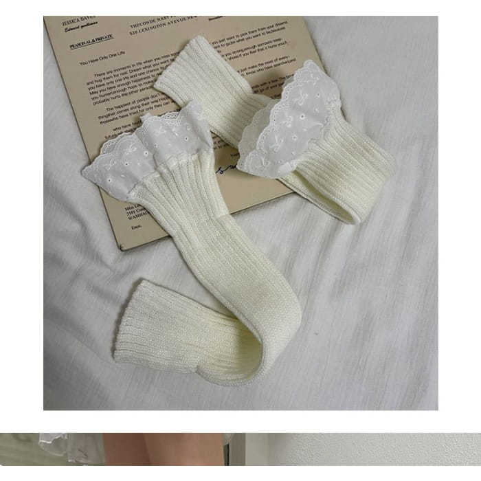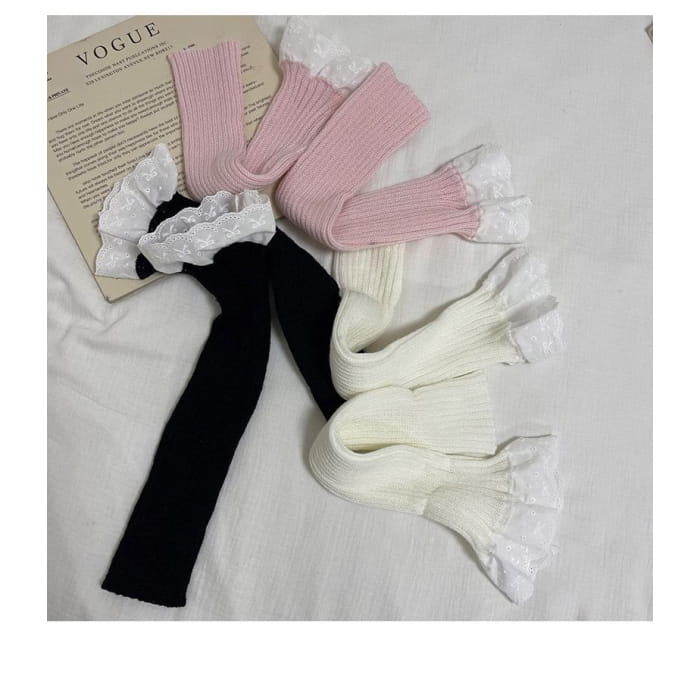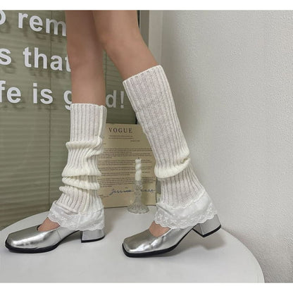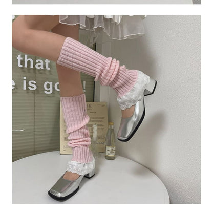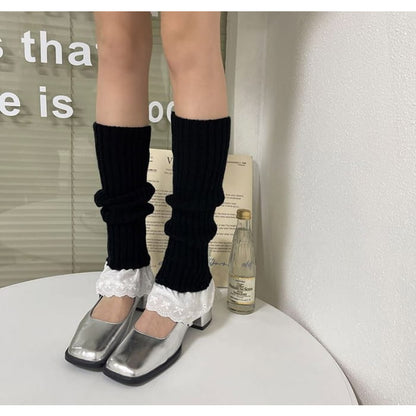 Lace Trim Ribbed Knit Leg Warmers