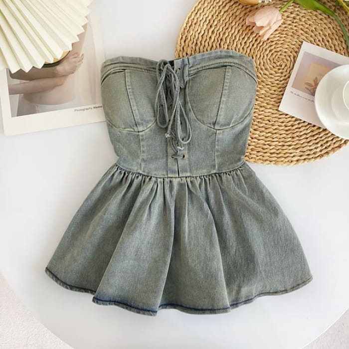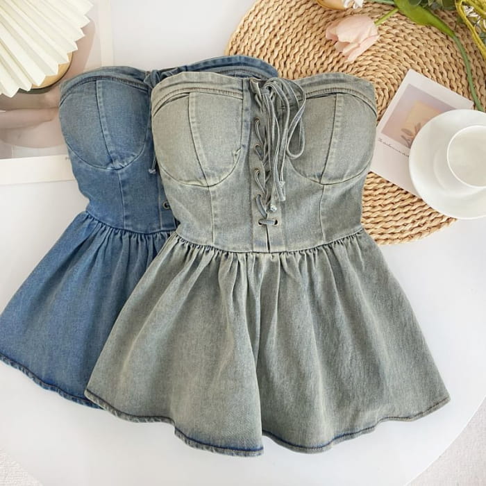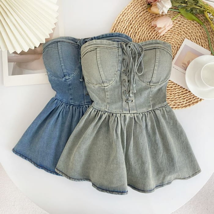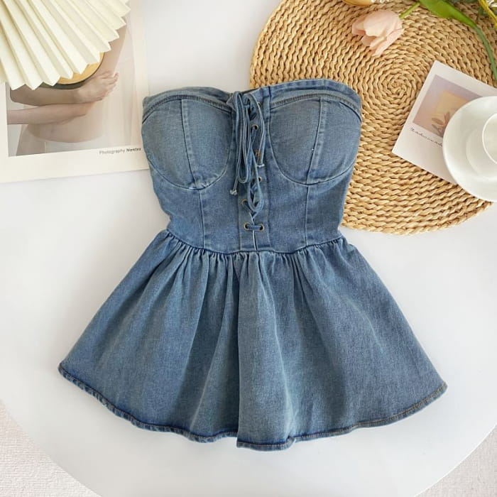 Lace-Up Peplum Denim Bustier Top