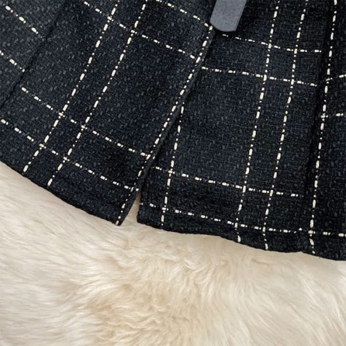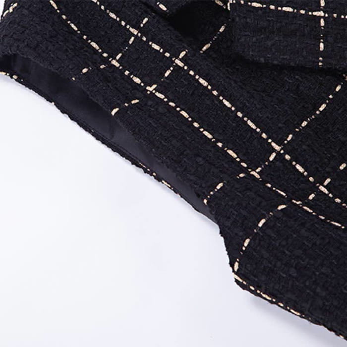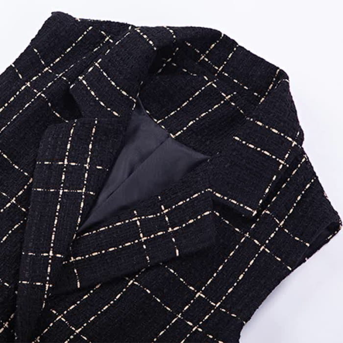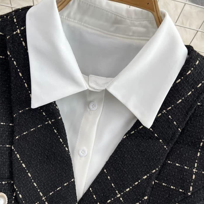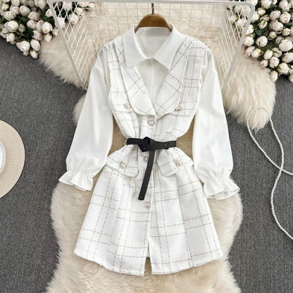 Lattice Print Belted Vest Long Sleeve Shirt Set