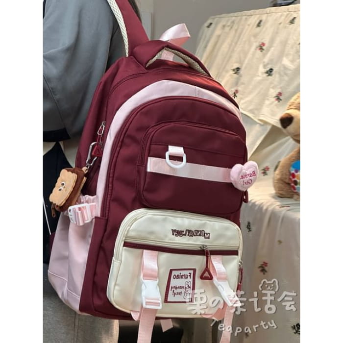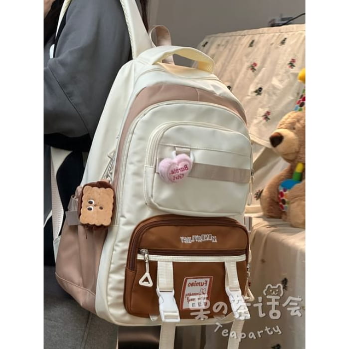Letter Embroidered Multi-Pocket Backpack / Coin Purse / Bag Charm / Set