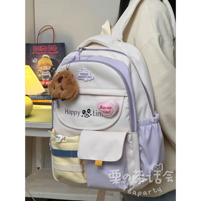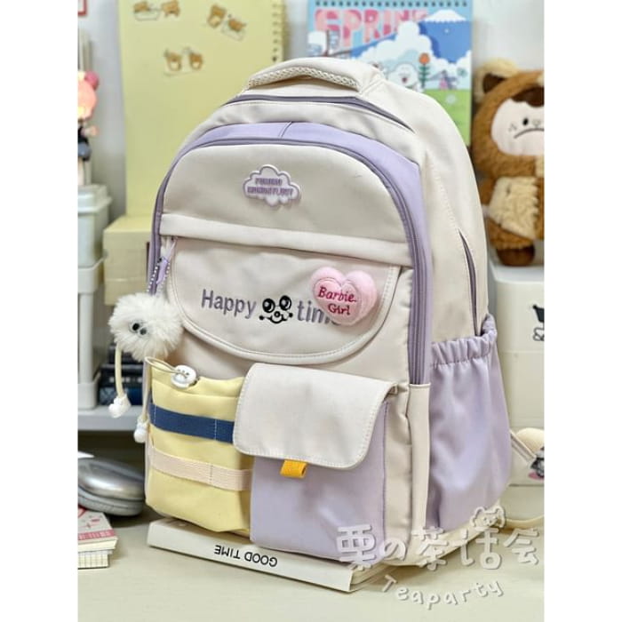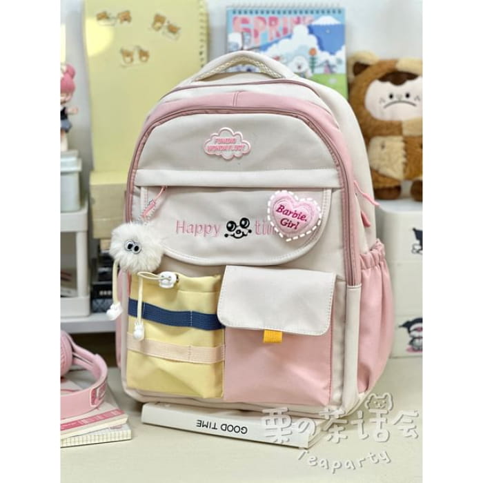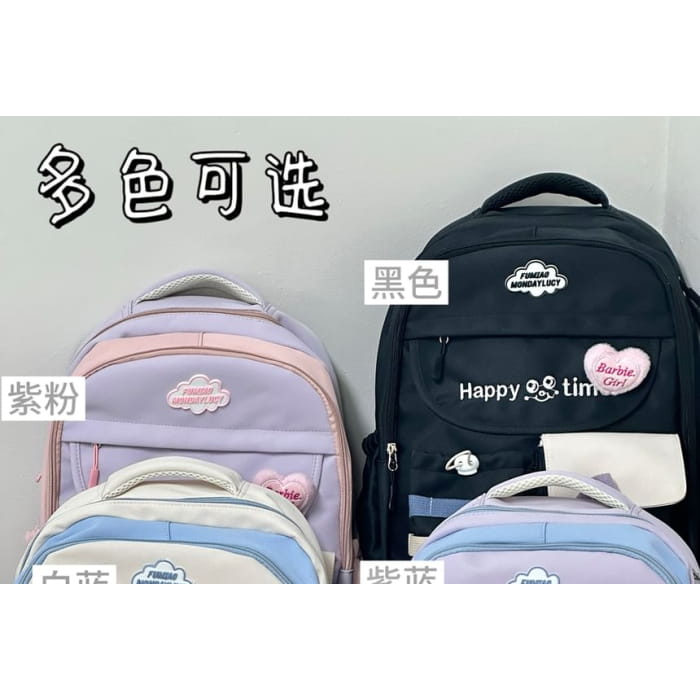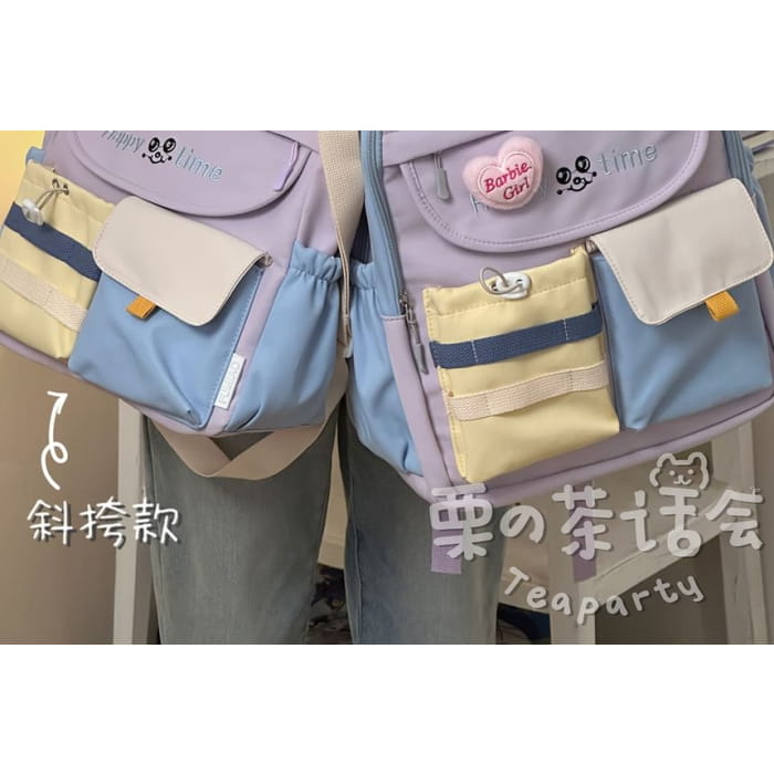 Letter Embroidered Multi-Pocket Tote Bag / Backpack / Bag Charm / Coin Purse / Set