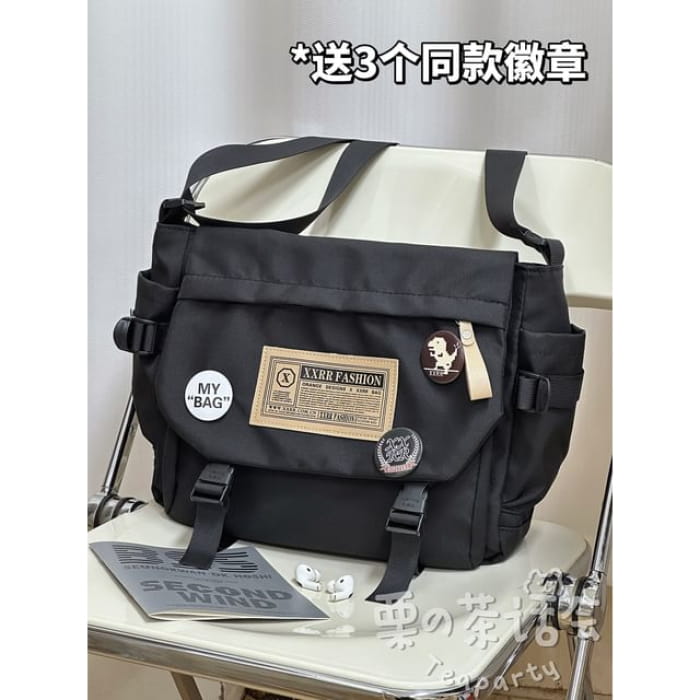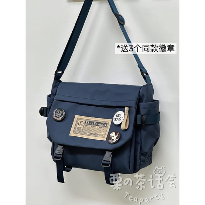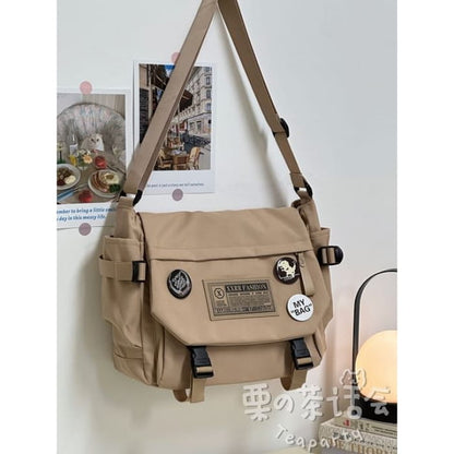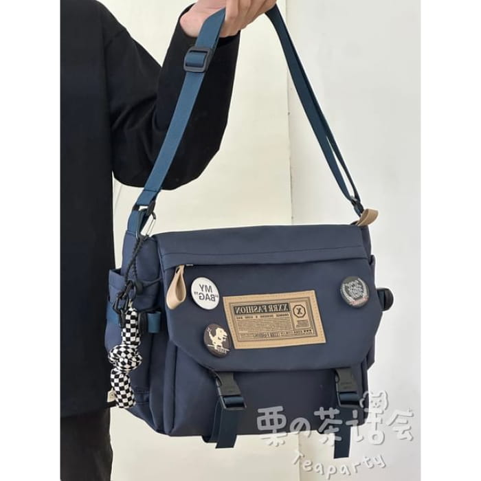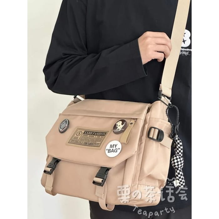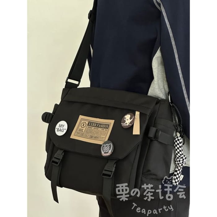 Lettering Applique Buckled Messenger Bag / Bag Charm / Set