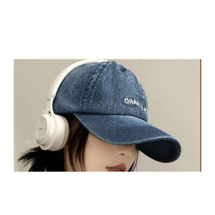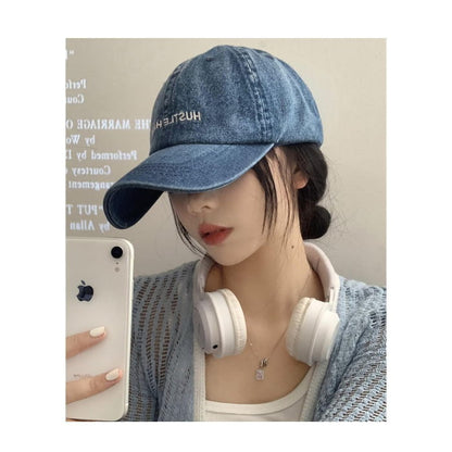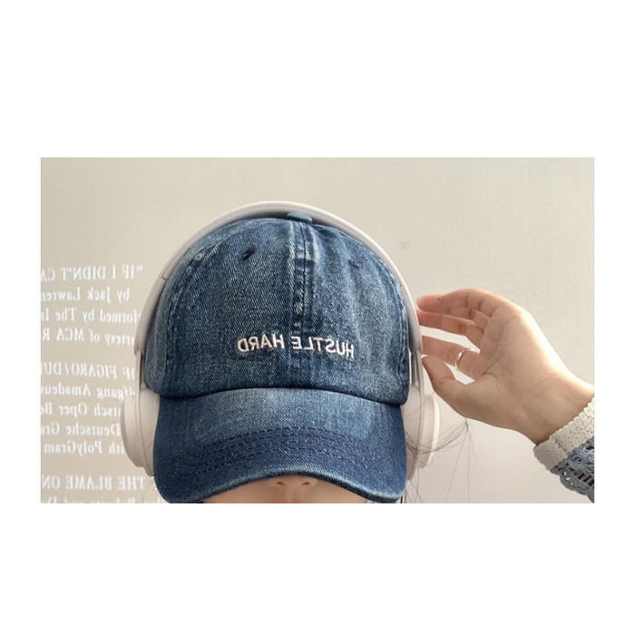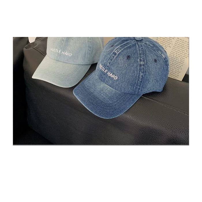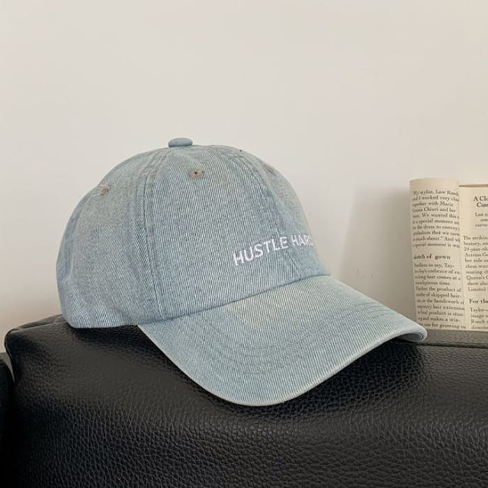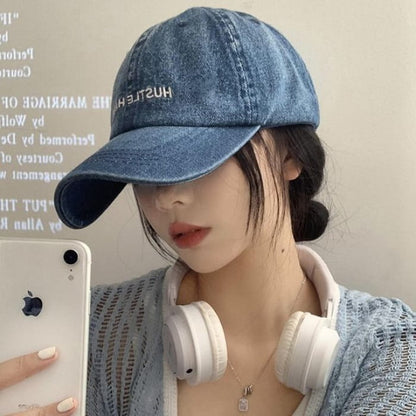 Lettering Embroidered Washed Denim Baseball Cap