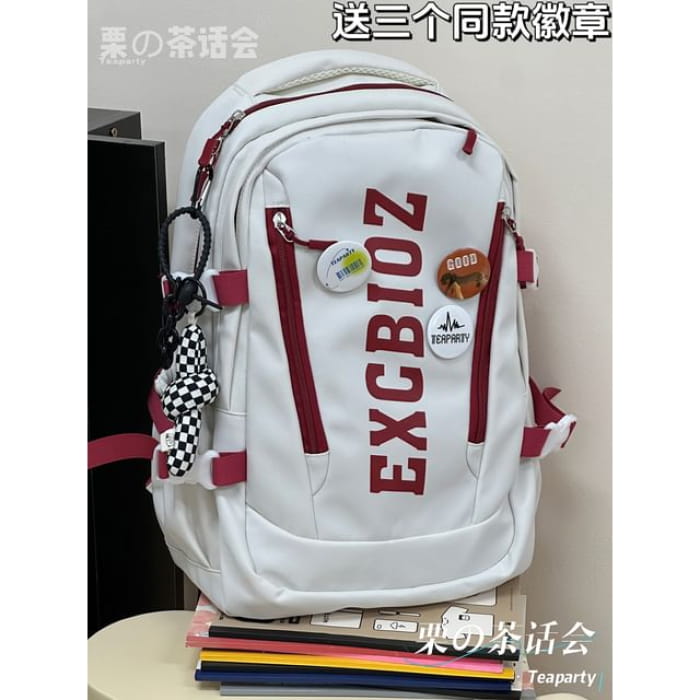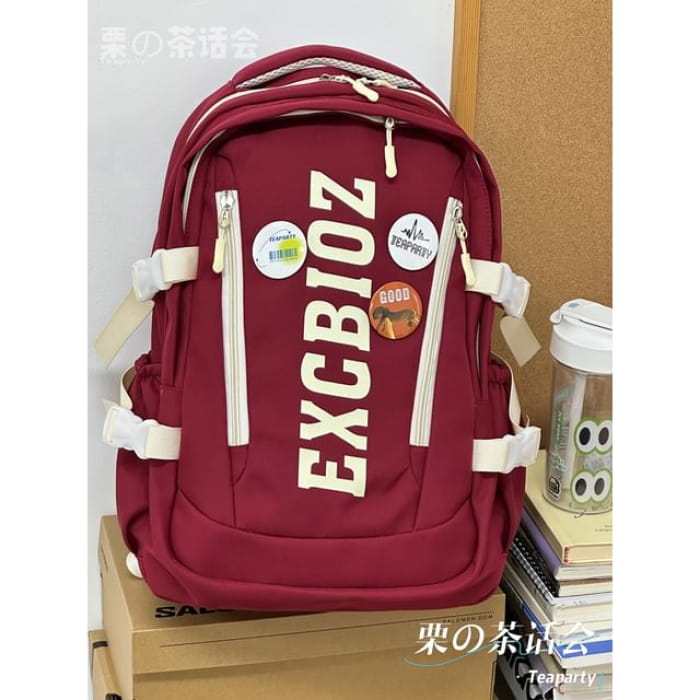 Lettering Print Buckle Backpack