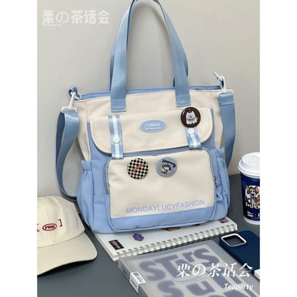 Lettering Print Flap Backpack / Crossbody Tote Bag