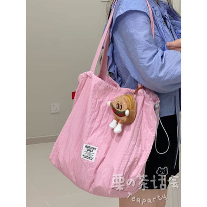 Lettering Ribbed Plain Tote Bag / Bag Charm / Set