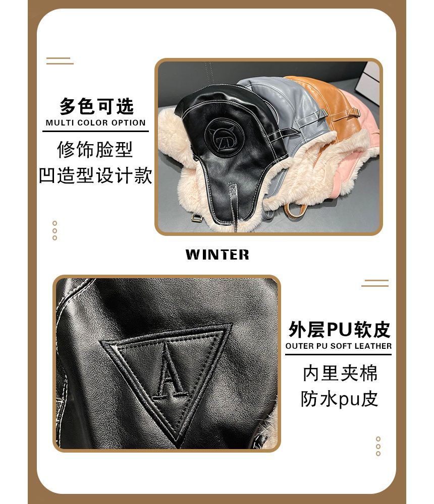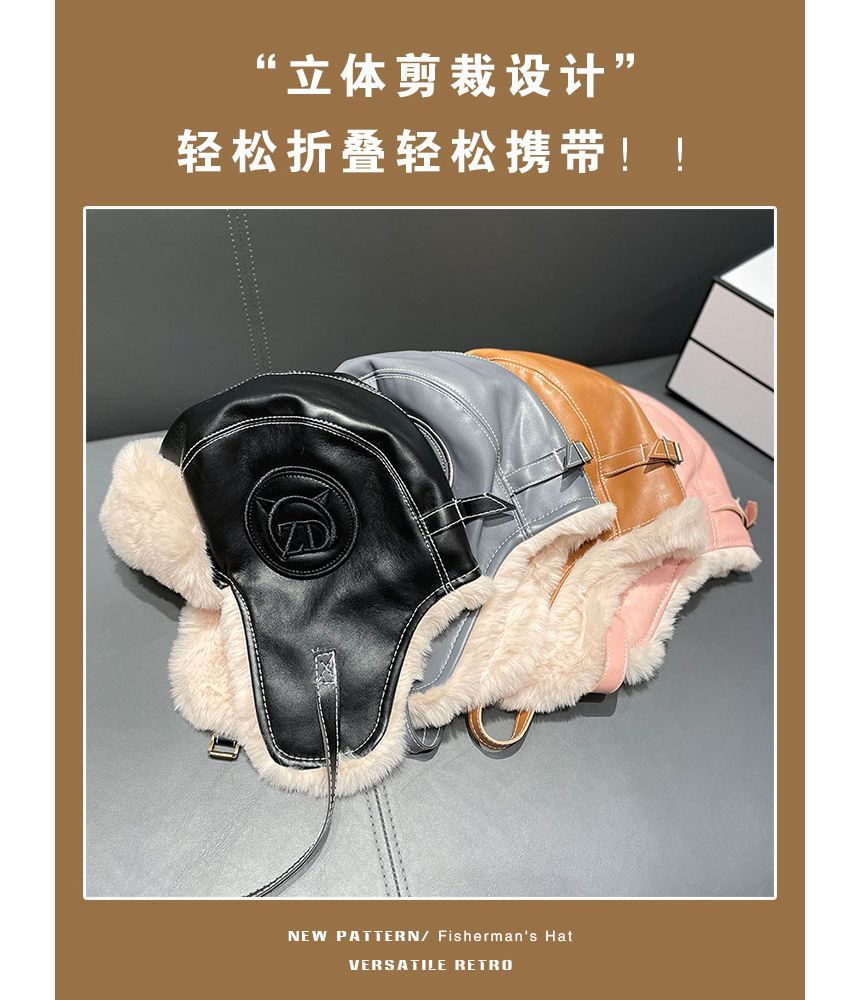 Fluffy Lined Faux Leather Hat