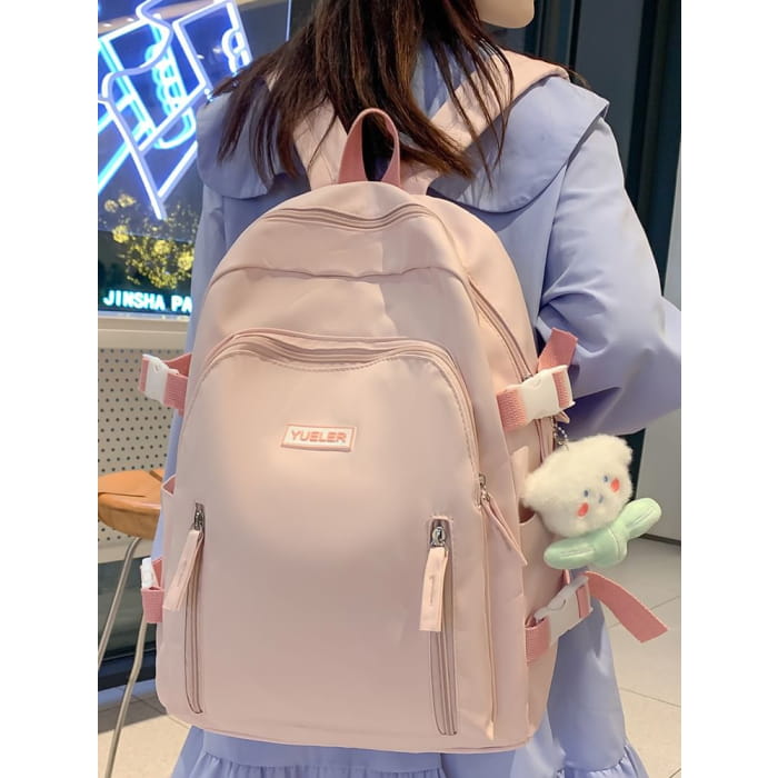 Logo Buckled Nylon Backpack / Bag Charm / Set