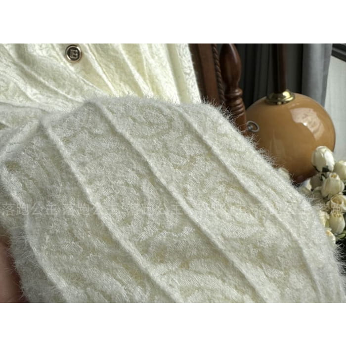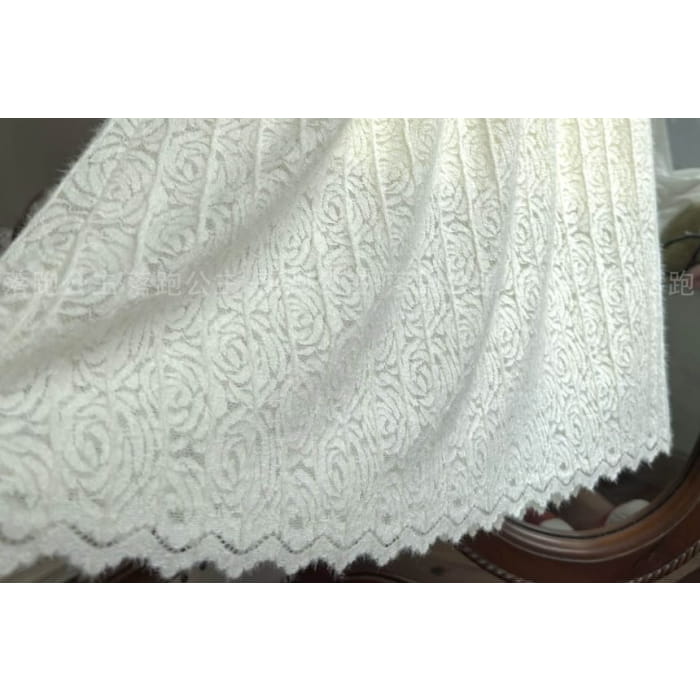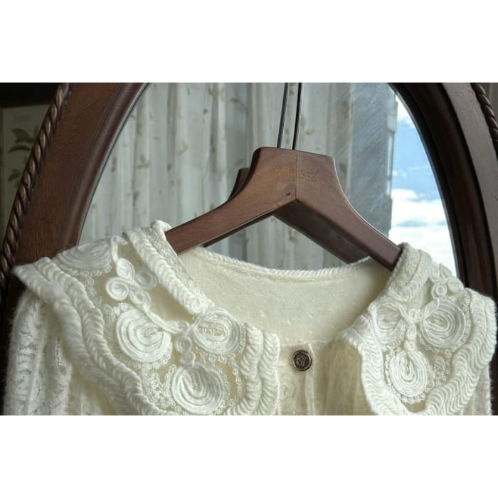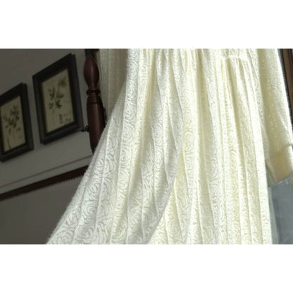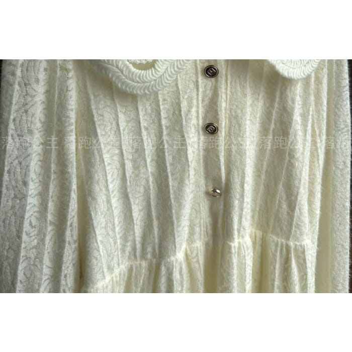 Long-Sleeve Collar Plain Lace Midi A-Line Dress