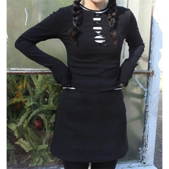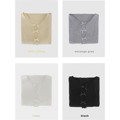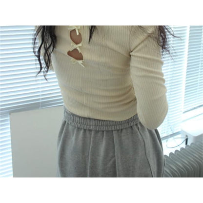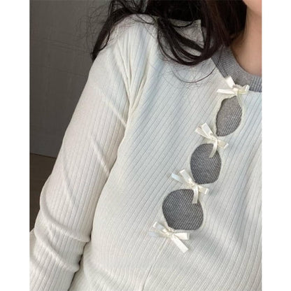Long-Sleeve Crew Neck Bow Cutout Knit Top