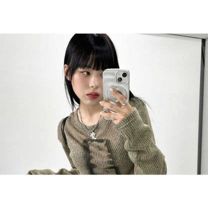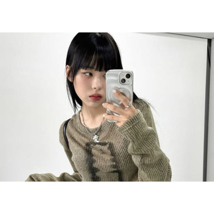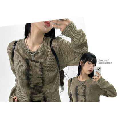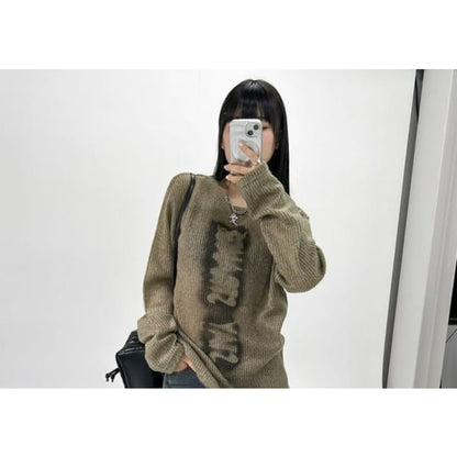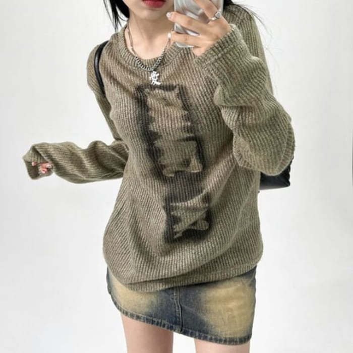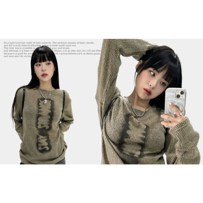 Long-Sleeve Crew Neck Lettering T-Shirt