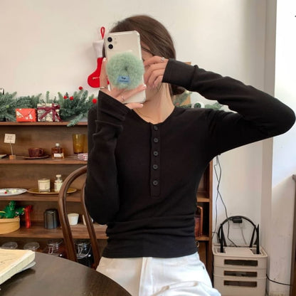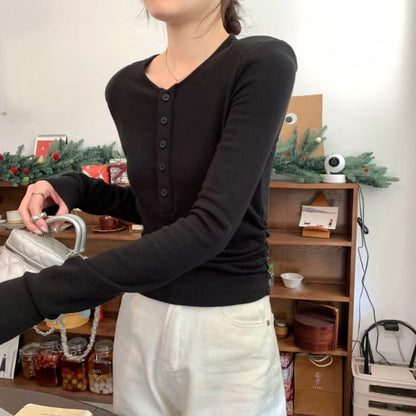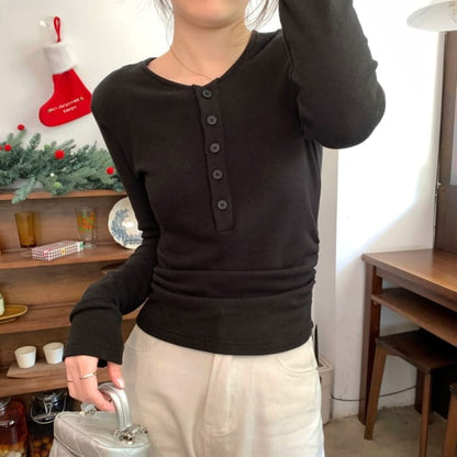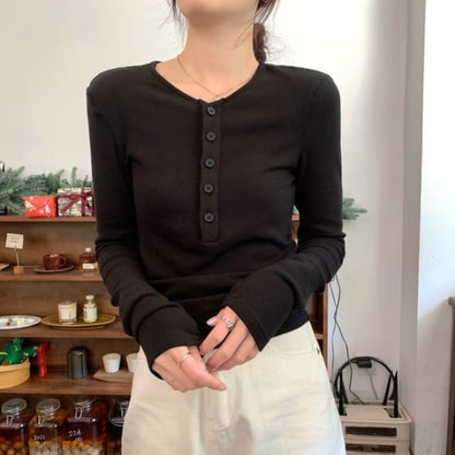 Long-Sleeve Crew Neck Plain Henley T-Shirt