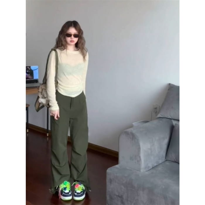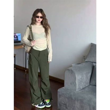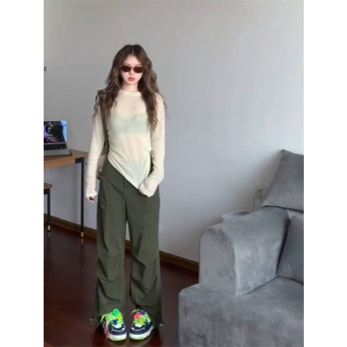 Long Sleeve Crew Neck Plain Sheer Knit Top
