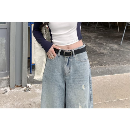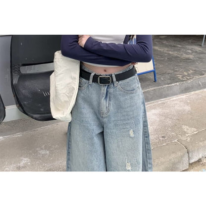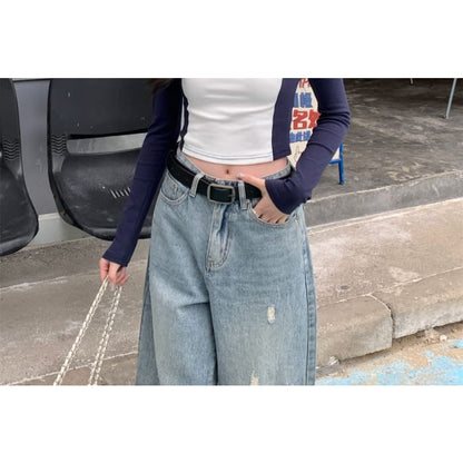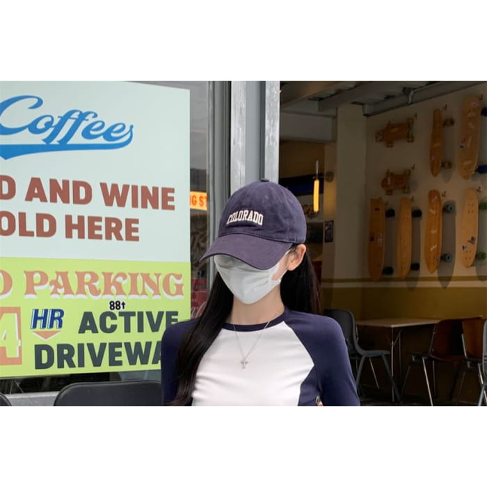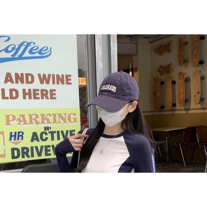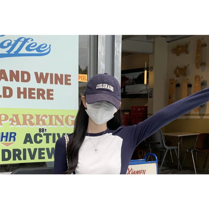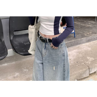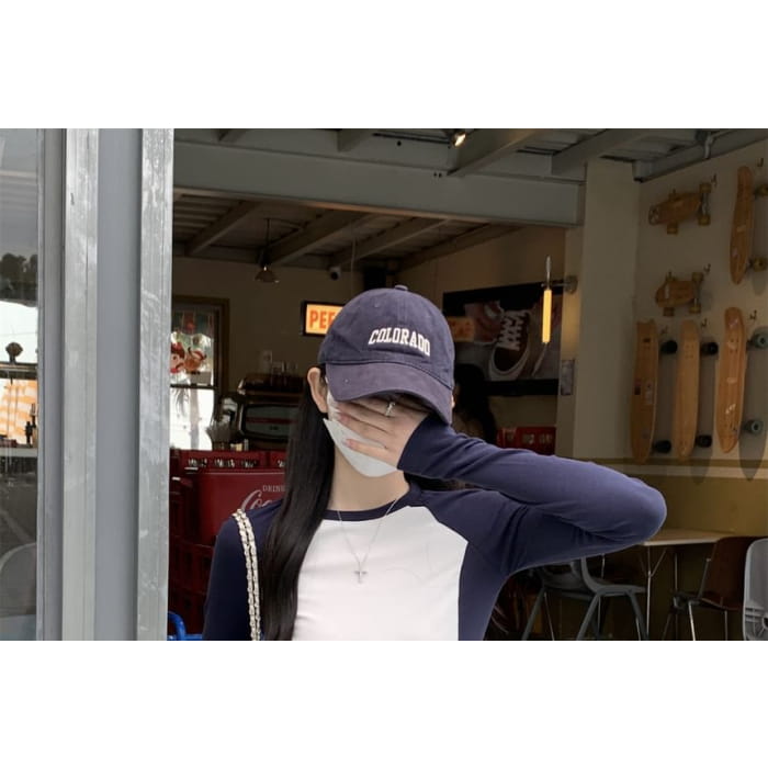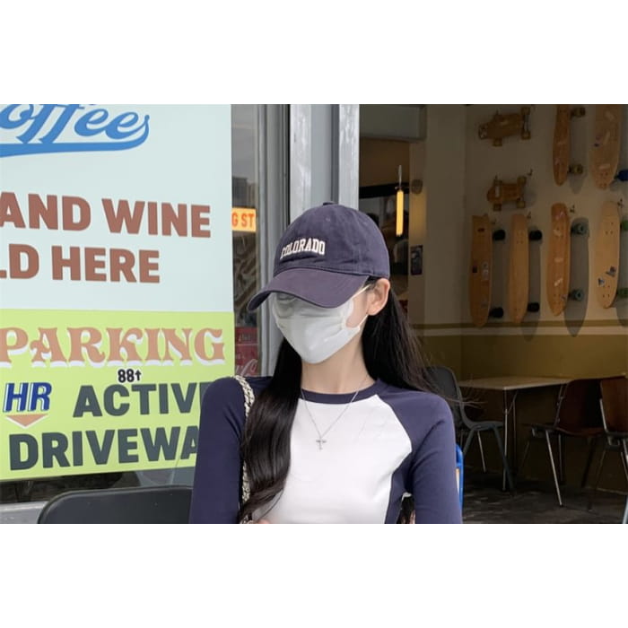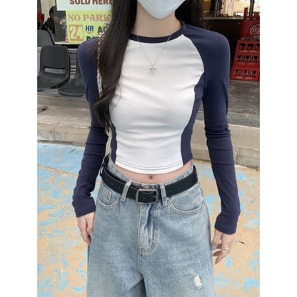 Long-Sleeve Crew Neck Two Tone Cropped T-Shirt