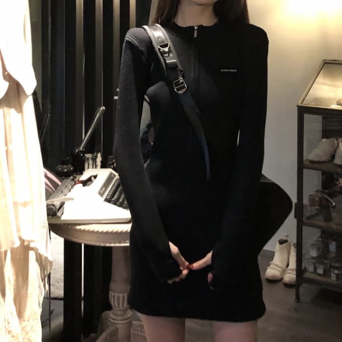 Long-Sleeve Crewneck Plain Mini Bodycon Dress