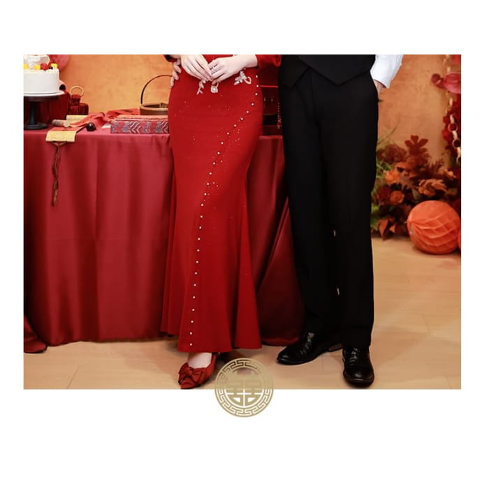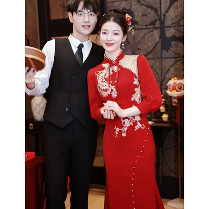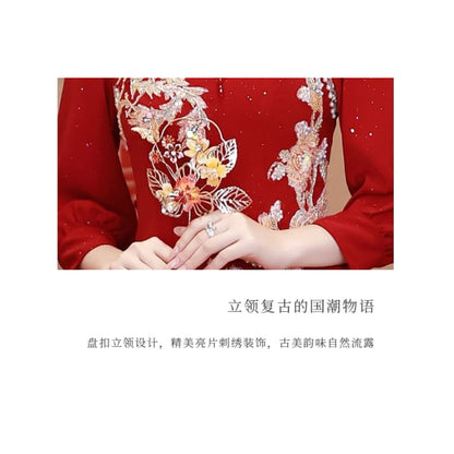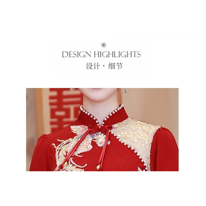 Long-Sleeve Embroidered Traditional Chinese Mermaid Cheongsam