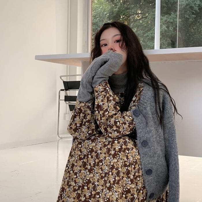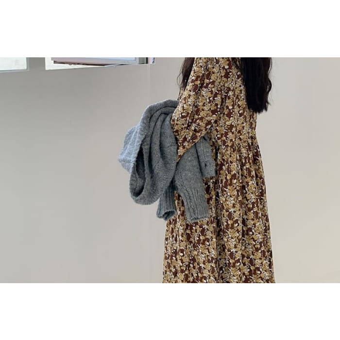 Long-Sleeve Floral Midi Smock Dress